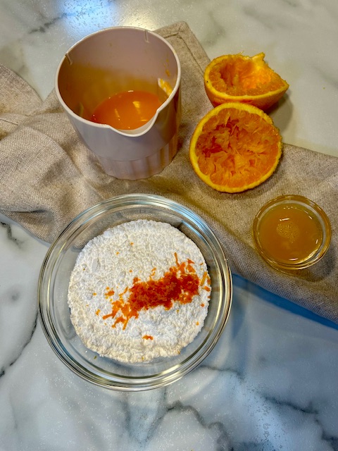 Whisk together the powdered sugar, orange zest and fresh squeezed orange juice, in a small bowl until blended.